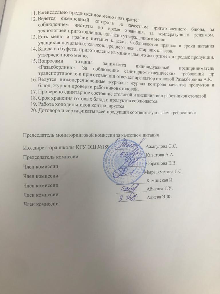 АКТ по контролю столовой